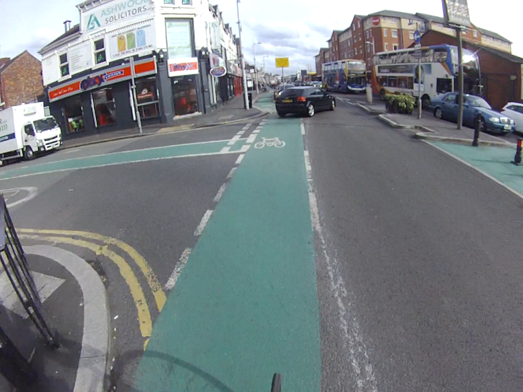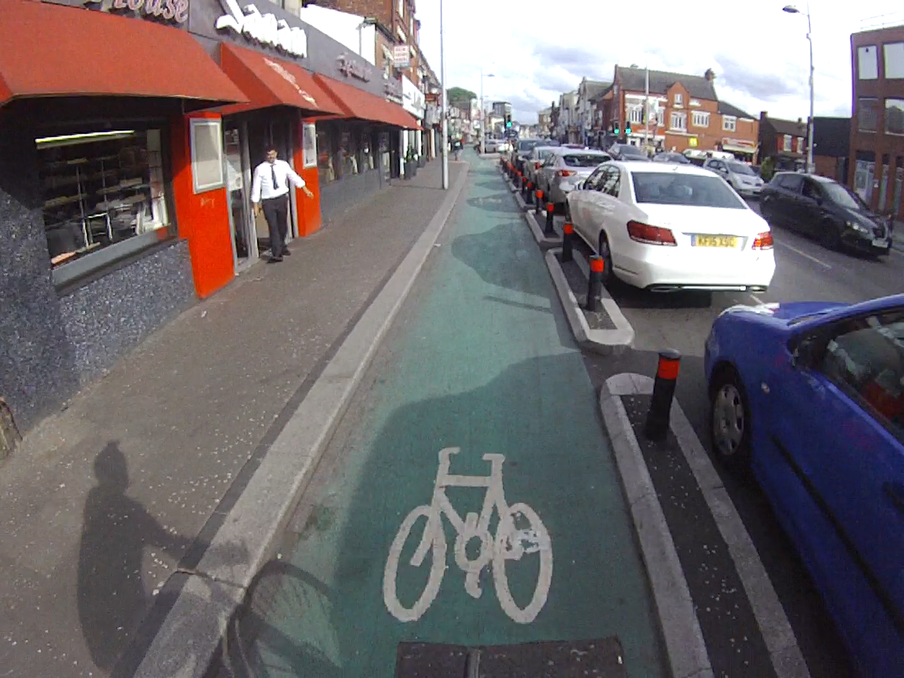 Given the pages of criticism I am curious how you come to the conclusion it is “Pretty Good”. The most serious issue you correctly identify is how dangerous it makes the junctions due to the risk of hooking collisions. This is an issue I take particularly seriously in this case as my daughter is currently studying at Manchester University – and while she tries to avoid using this route if possible it is difficult given the road passes through the University.I really don’t wan’t to see her killed killed because segregationist planners ignore the basic principles of traffic engineering (ie NOT arranging for traffic turning left at a junction to approach to the right of traffic heading straight on).