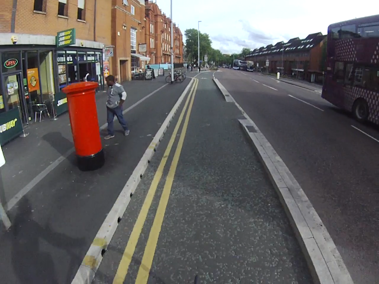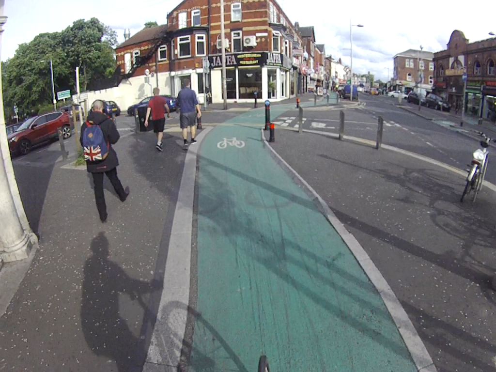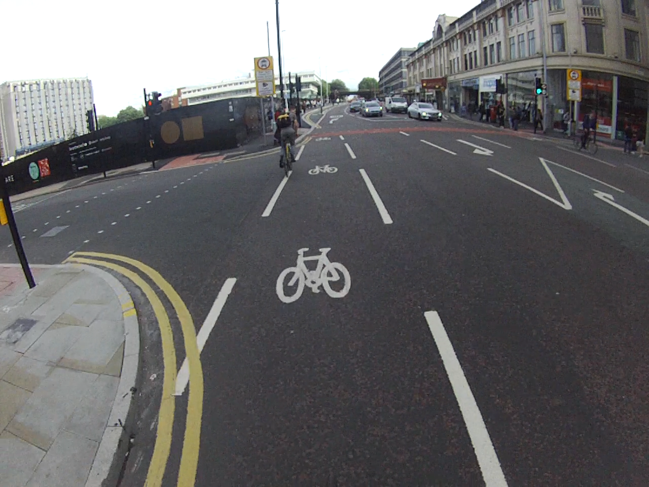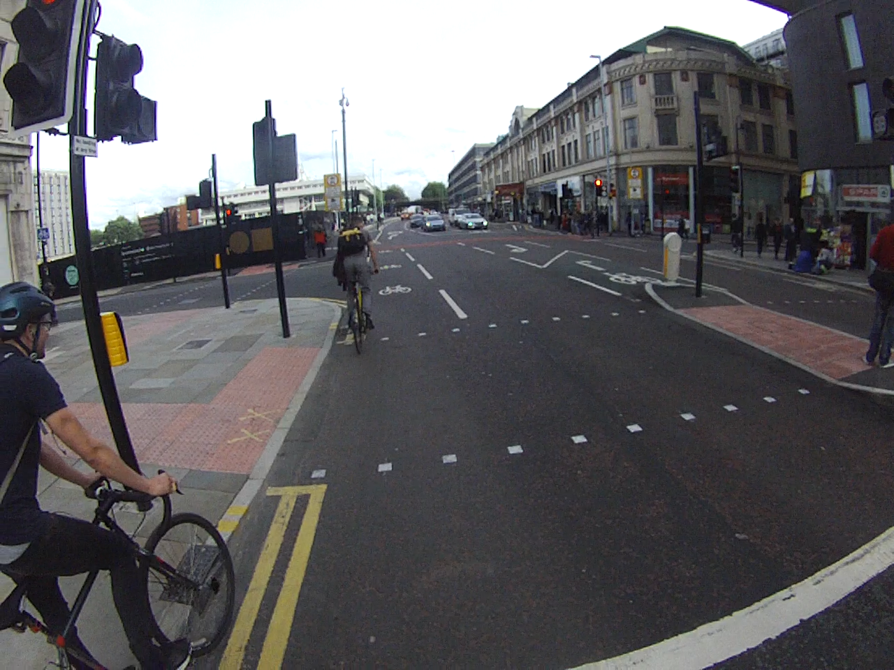 Regarding the bit at 3.45, I did comment specifically on this in the text, saying: “It is also a situation that I would not get into in the absence of the protected cycleway, as I would usually avoid putting myself on the inside of a left turn lane at a junction. Again, this is an example of infrastructure that tries to mix two incompatible approaches: separation and protection in the parts between the junctions and sharing the carriageway at the junctions themselves.” I think this sums up the whole problem with the scheme – it is neither one nor the other.