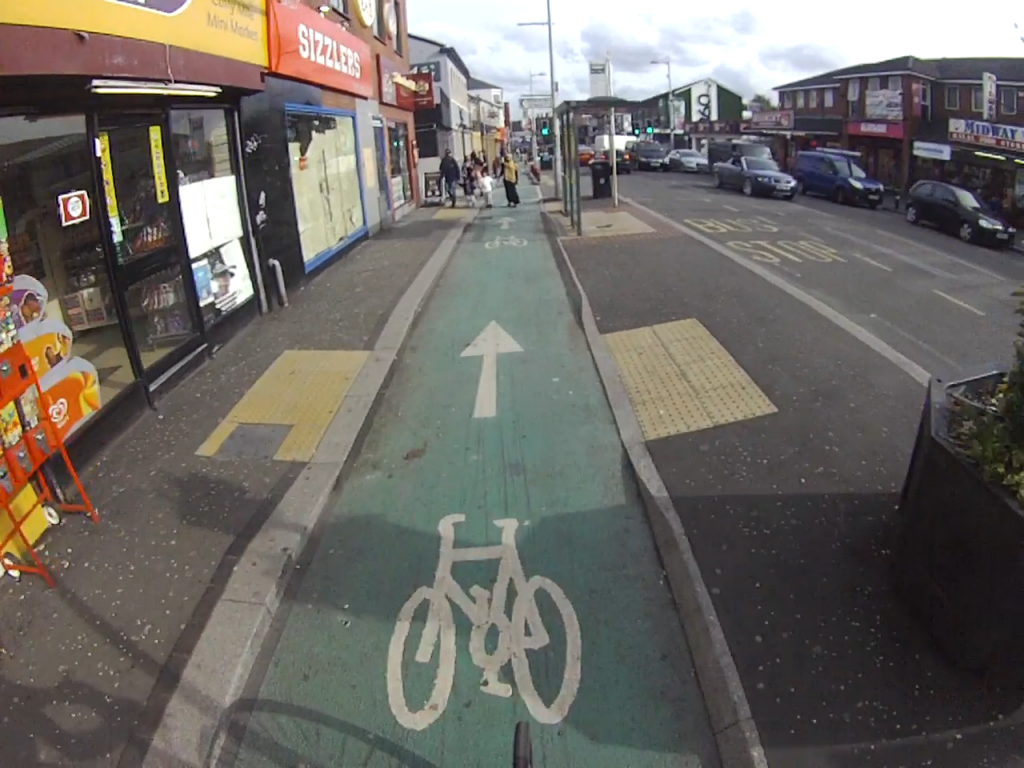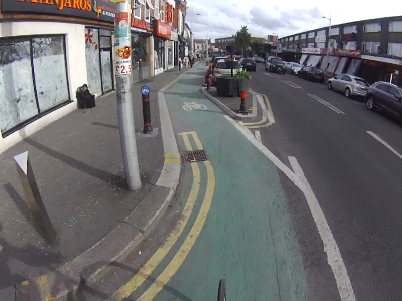 As you go through the “curry mile” section of the route, the cycle way becomes something of a slalom, due mainly to the fact that the designers have sought to maintain on-road parking throughout most of this section:
