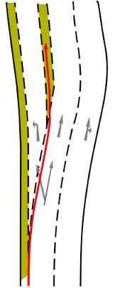 That said, until recently I only rode in primary position when approaching a junction in a left/straight lane and I’m going straight. Bizarrely, I was in primary position today, almost exactly as in your third riding line image, when a taxi driver tried to overtake me and turn left from the right-hand (straight only) lane at the same time. He somehow contrived to hit me in the shoulder and shunt me to the left without knocking me off my bicycle, so that was a bit lucky. I shouted “OI!” and he had to stop at a traffic light just after the turn, so I followed him in and he claimed SMIDSY with a big smiley apologetic face. Not that that’s any good if someone ends up dead… :/