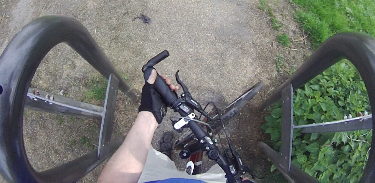 This video lasts just under 26 minutes, giving an average speed of just over 11 miles-per-hour. For a fairly leisurely ride like the ones I tend to take nowadays, that’s not bad, but for commuting it’s slow. This route doesn’t go near where I used to work, but for comparison I used to average about 15 miles-per-hour doing the 12.5 miles on main roads to work, including stops at many traffic lights. That doesn’t sound like a huge speed difference, but it represents an extra 18 minutes on my old journey to work. Of course, using a shared path like this would only be practical for about half of the year anyway, because the route is almost all unlit.