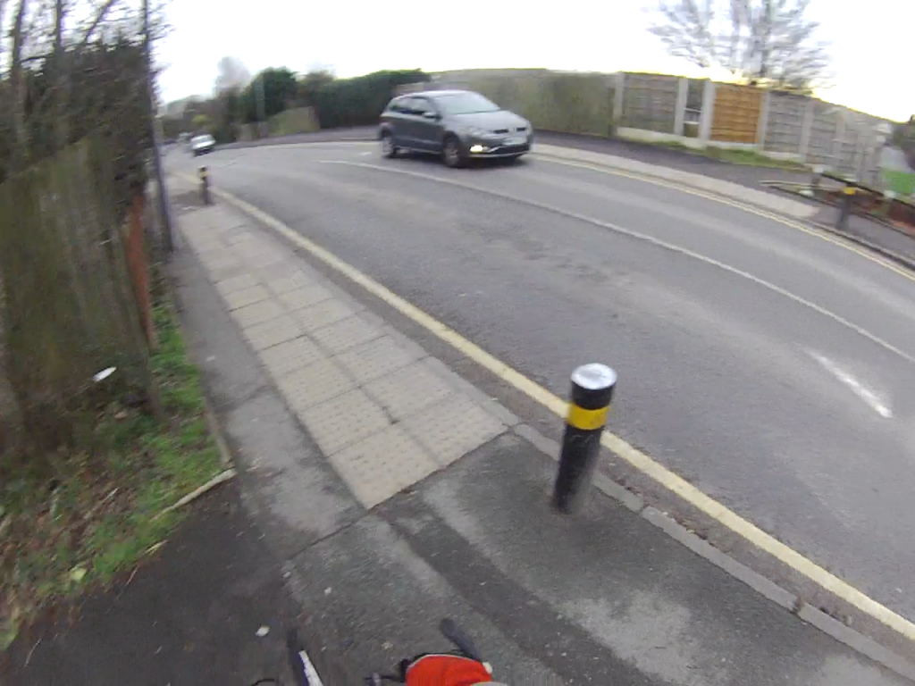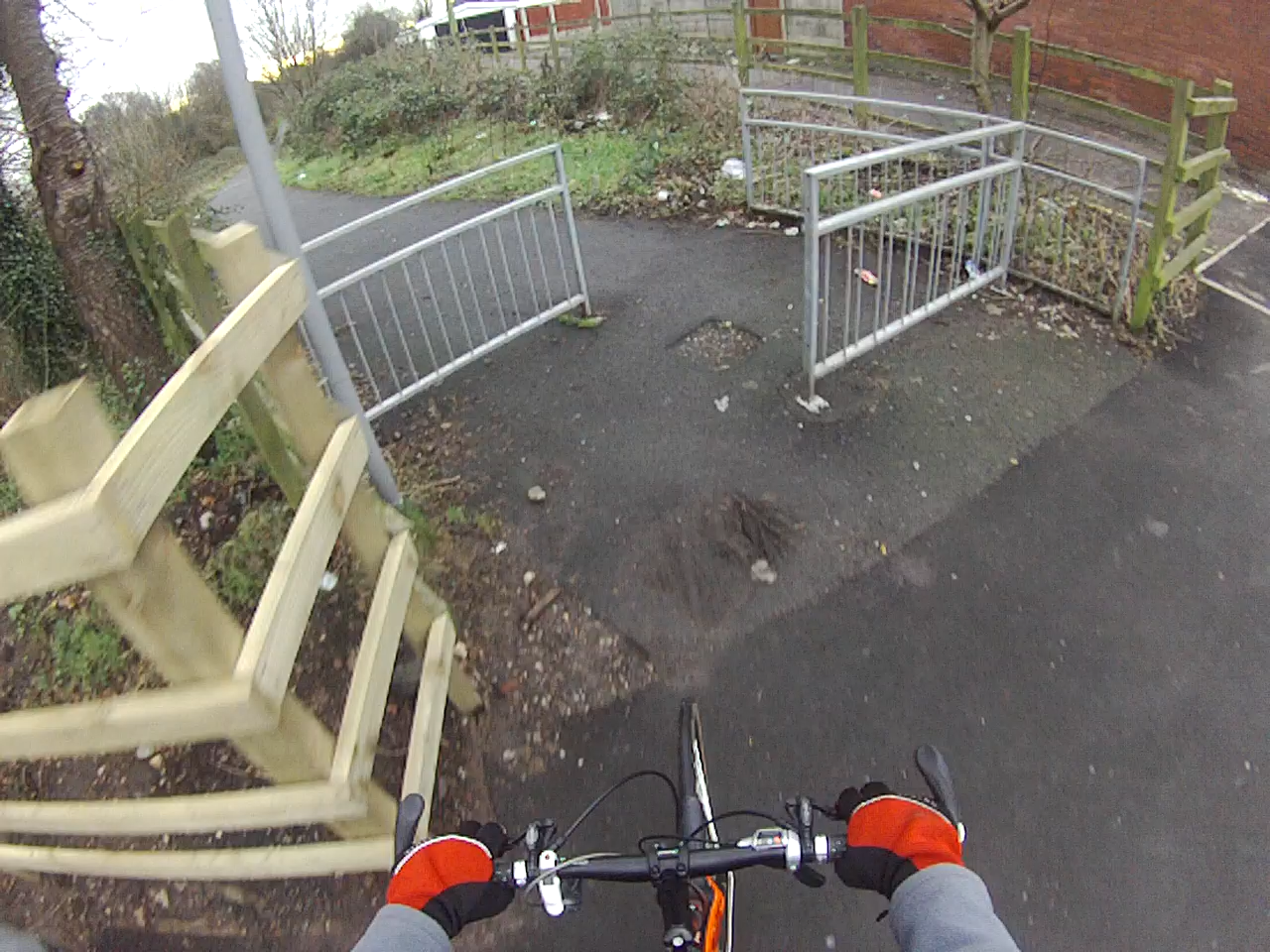 There is an additional barrier to using this route with the tagalong, which is the entrance to the new ramp from the shared footway on Highfield Road: