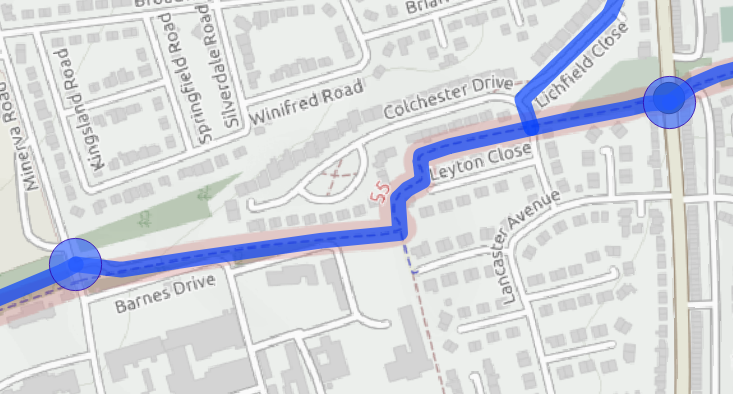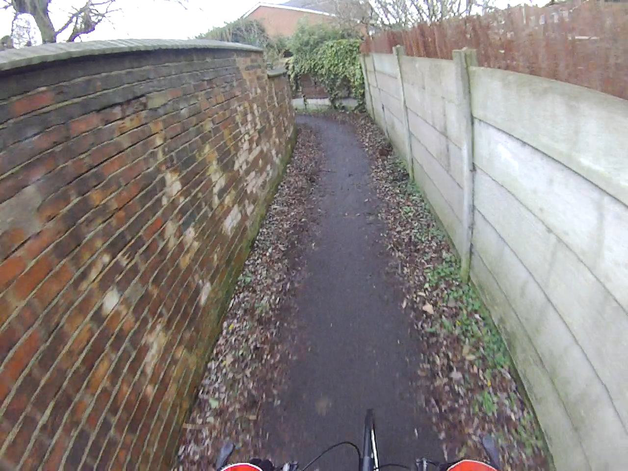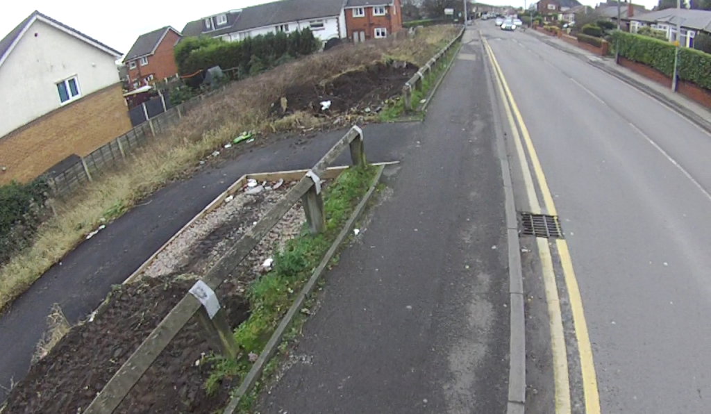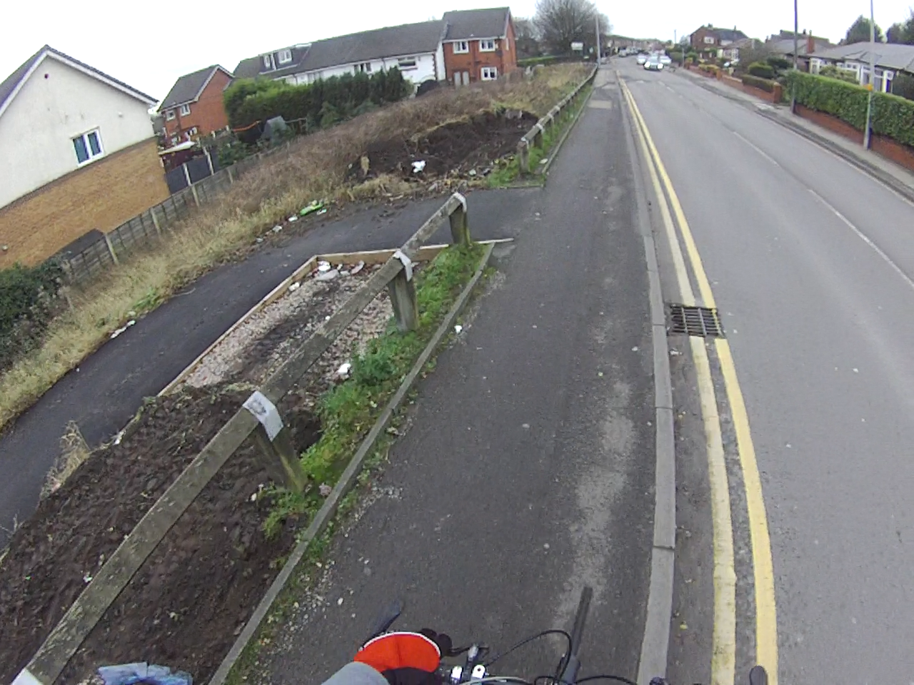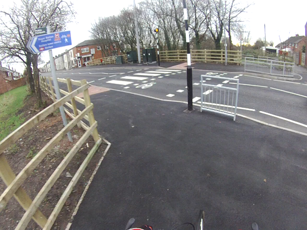 The one possibility I can see is to widen the straight section that runs parallel with Barnes drive, using the land to the West (below the route on the map above), which belongs to the hospital. This would involve taking down the high brick wall (to the right on the first picture above). The route could then turn right at the end of that straight section, by widening the short, narrow section there in a similar way, to come out onto Lancaster Avenue. From there, the route could continue on quiet roads to go down Anchor Lane, with two new crossings on Plodder Lane and Highfield Road, replacing the ones that have just been built.