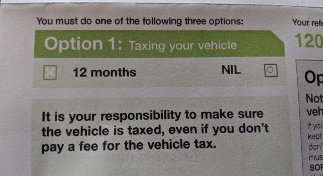 For many motor vehicles, the rate of VED is zero. This is the VED reminder for my own car: