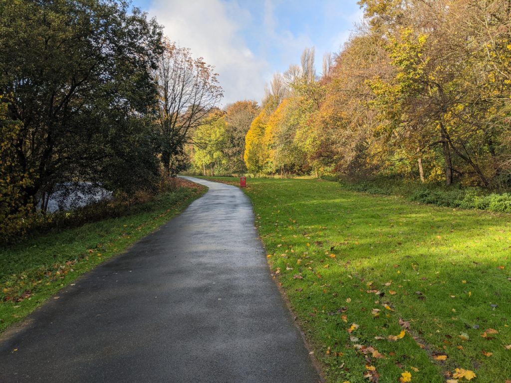 The route through the park makes for a lovely section of leisure ride on a nice sunny day when the park is full of people, though it is a bit steep going away from the town centre. I can easily do it on my 27-gear Dawes hybrid bike, but I think it would be a bit of a challenge on my Elephant Bike loaded up with fruit and veg on the way back from Bolton Market