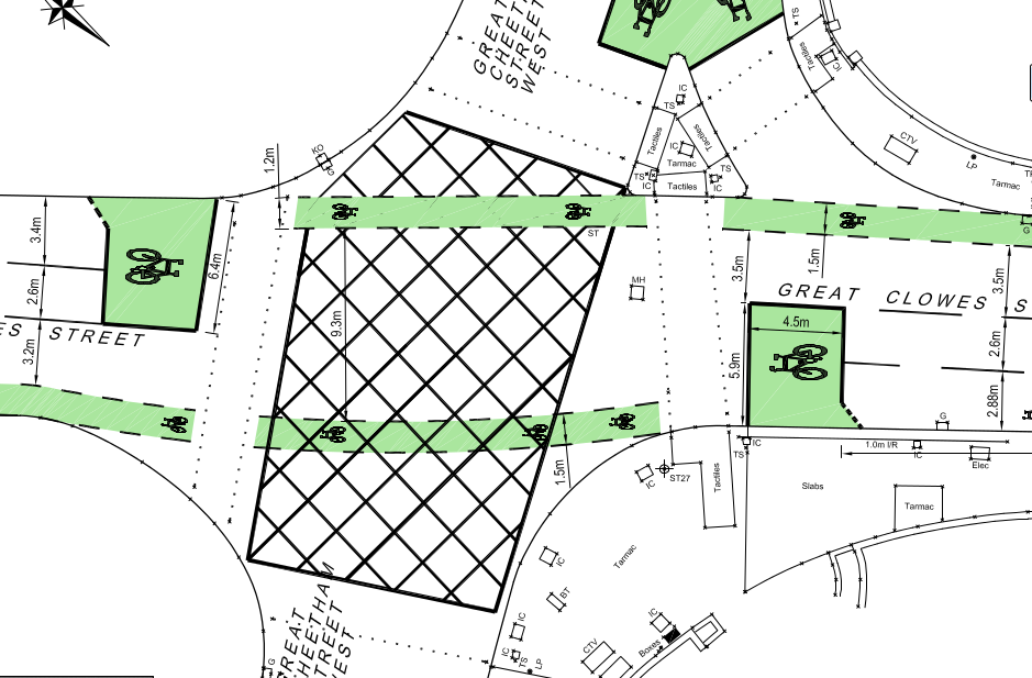 The first one I want to show is the junction between Great Clowes Street and Great Cheethem Street West:
